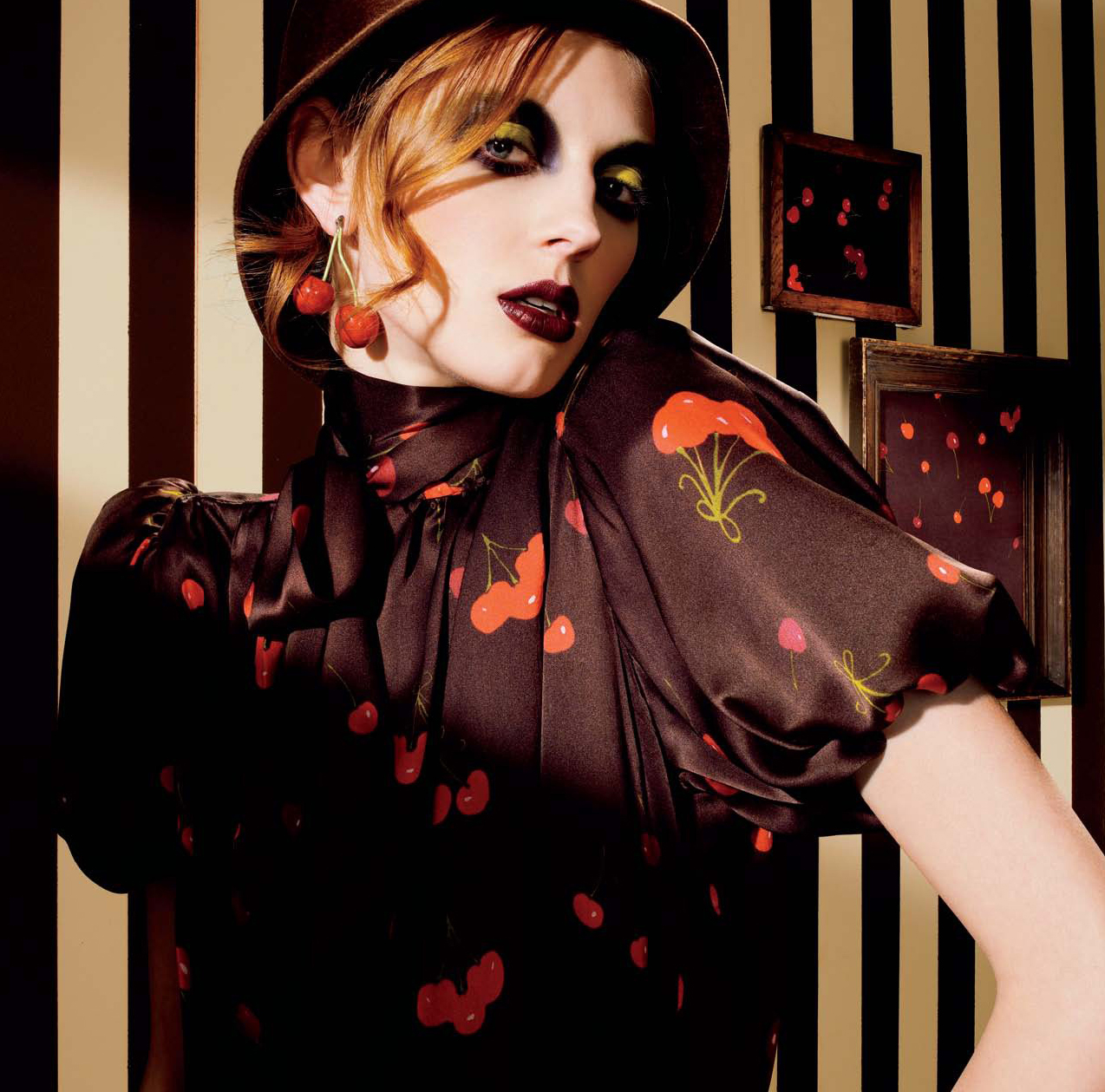 Cherry on top. Pity poor Eve, there’s a new forbidden fruit. With a smouldering eye and a plush, purple-red mouth, she’s a living, sensual pleasure. The Cult of Cherry is luscious, dramatic, undeniably eroticized. Ripened lips, Spiced Hot Chocolate eyes or Illegal Purple nails, combine to seduce with a sweet-and-shock,