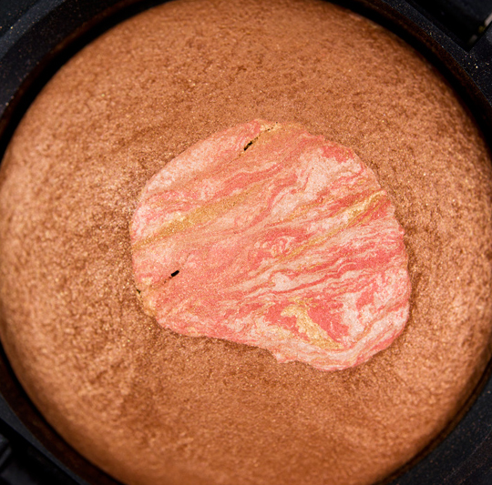 It’s more pigmented with a heavier sheen than Chanel Bronze Rose, with a similar color (but slightly sheerer and with shimmer) to MAC Sun Power. I think MAC Pink Power is going to get you close, but it will be with less sparkle, perhaps less of a dirty color, if you mixed within the compact.
